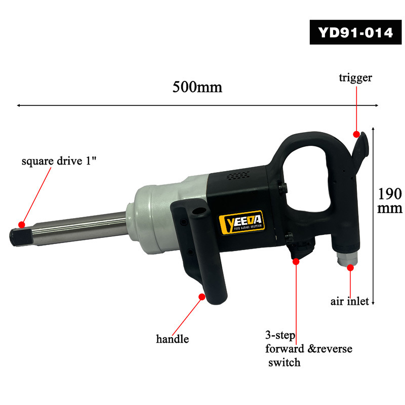 यह 1-इंच ड्राइव हेवी-ड्यूटी ट्विन हैमर इम्पैक्ट रिंच (YD91-014) एक ट्विन-हैमर तंत्र से लैस है, जो बड़े आकार के बोल्ट असेंबली और डिसअसेंबली कार्यों को आसानी से संभालने के लिए शक्तिशाली और सुसंगत टॉर्क प्रदान करता है। यह 1" स्क्वायर ड्राइव के साथ आता है, जो सॉकेट की एक विस्तृत श्रृंखला के साथ आसान संगतता को सक्षम बनाता है।